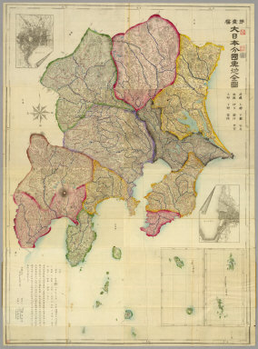 7 maps : col.; 178 x 153 cm. or smaller, folded in cover 25 x 18 cm. Copperplate print. In Japanese. Orientation varies. Relief shown by hachures. Includes preface and legend.