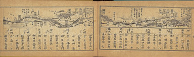 1 atlas (36 leaves) : 15 maps ; 13 cm. Cover title. Copperplate print. In Japanese. Bird's-eye view. Orientation varies. Includes preface and list of inns. Shows distance of roads and railways. East Asian Library call number: J51 SPEC-Map.
