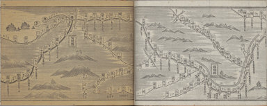 1 atlas (27 leaves) : 18 maps ; 13 cm. Mounted cover title. Copperplate print. In Japanese. Orientation varies. Relief shown pictorially. Shows distance of road and sea routes. Includes distance chart and legend. Shows views of tourist attractions. East Asian Library call number: J65 SPEC-Map.