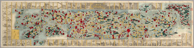 Japanese date Meiji 17 [1884]. In color. Folded. Mounted cover title. Copperplate print. In Japanese. Relief shown pictorially. Orientation varies. Shows distance of roads and sea routes. Shows views of tourist attractions. Includes legend.